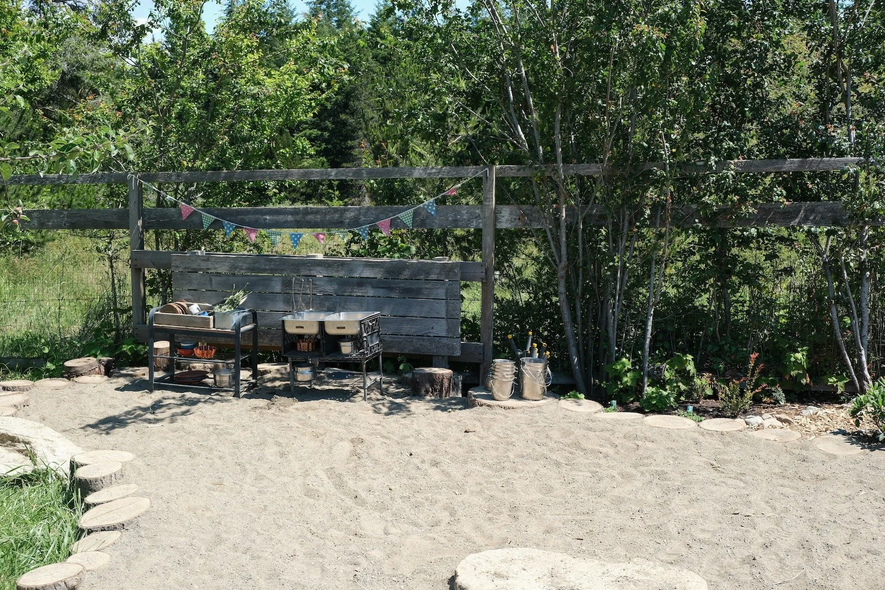 Our gated play garden is where we start the morning each day in welcoming the children. We have a large sand-play area, built by parents from Sweetgrass’s first class, and a very busy mud kitchen. The water pump allows children the freedom of water play. We have an apple orchard with low branches, several swings, and covered table space. Raised beds border one wall of the fence which offer a perfect opportunity for gardening though all seasons.
